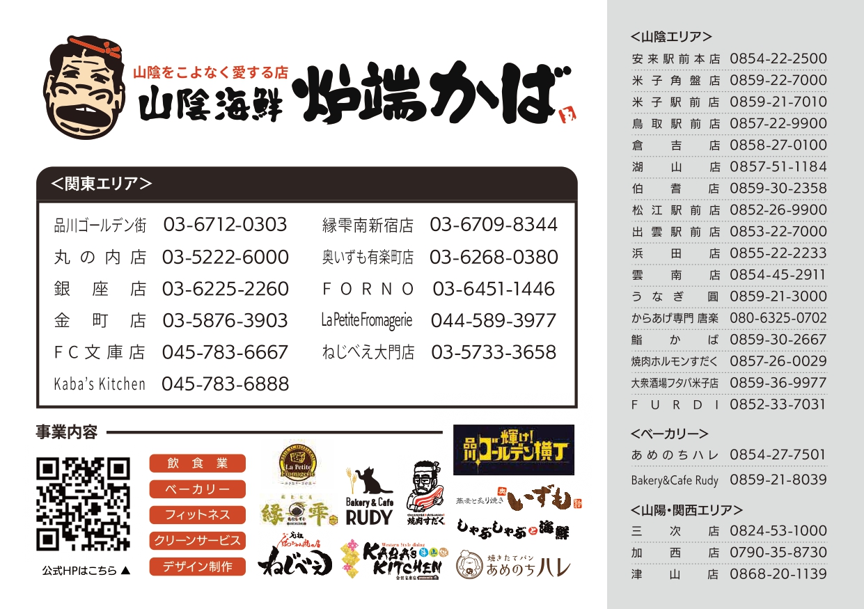 かばはうすホールディングス株式会社 2025/10/24 会社名:かばはうすホールディングス株式会社 本社住所:〒692-0011 島根県安来市安来町2093-4 URL:https://shop-robata.jp/